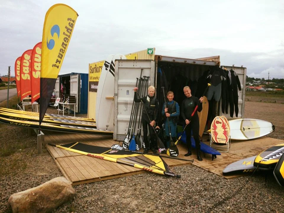 Uthyrningen och kurserna är baserade från surfboden i Apelviken på den stora grusparkeringen vid servicehuset med toalett/dusch. Det går att hyra utrustning även om det inte finns personal på plats; ring 0340-83750
